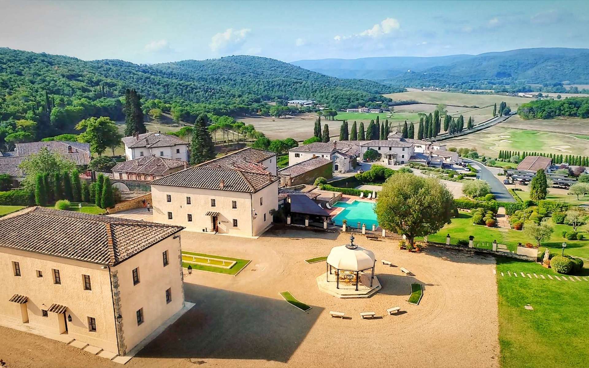 Once a medieval village, the resort preserves its history and character across modern accommodations, a wellness spa and world-class golf course for a truly original stay. The townscape and Towers of Siena are within view, and it’s a short journey to San Gimignano, Montalcino, Monteriggioni Chiusdino, Murlo and treasured museums, vineyards and architecture – including San Galgano Abbey, home of the 'sword in the rock' story.